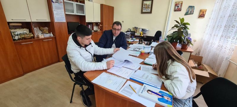 По традиция в Деня на Европа ученици заеха местата на своите директори, учители, треньори и помощен персонал. Никола Ников от 11 "б" клас зае мястото на директора на училището Лъчезар Дойчев, а Александра Балинова от 11"б" и Елица Тодорва от 7"а" бяха двете заместник - директорки. Учители по английски език бяха Ивайло Иванов от 7"а", Пресиян Семов от 8"а" и Никола Йорданов от шести клас. Урок по математика представи Стилян Орлинов от 7"а". Мястото на учителката по химия Гергана Донева зае Георги Енев от 8 "а", а в часа по изобразително изкуство се изяви Радомир Неновски от 7"б". Урокът по физика и астрономия се падна на Александър Сърбинов от 10 "б" клас. Секретарското място бе попълнено от Лъчезар Тодоров от 10 "б" клас. И накрая, но не на последно място в ролята на Образователен медиатор влязоха: Даниеле Кондев 7 "б", Петър Чаушев 6 "а", Коста Панайотов 10 "б" и Никола Стефанов 11 "б".